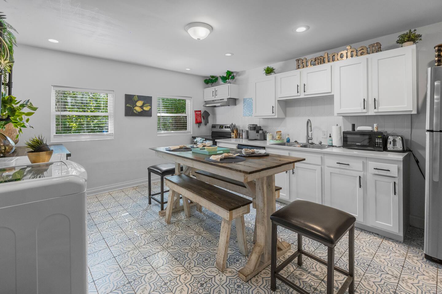 Honeysuckle House 🔸 Spacious and perfect for families or groups up to 8 🔸 Modern, fully renovated half-duplex in the ❤️ of Birmingham 🔸 Steps from Garage Cafe & Bar, & close to UAB & downtown 🔸 Fully stocked kitchen with everything you need to cook 🔸 Comfortable bedrooms with memory foam mattresses 🔸 TVs in every room 🔸 Free public street parking 🔸 Located in a vibrant, diverse neighborhood with a welcoming vibe
