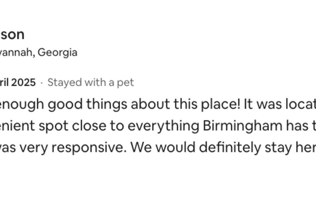 π‘ About this space β Honeysuckle House Beautifully renovated half-duplex in a historic Birmingham neighborhood. The Honeysuckle House has been a very successful Airbnb for more than 4 years with over 315 βοΈ 5 star reviews. While we are the new owners, we aim to provide the same exceptional service and hospitality. See previous reviews in the photo gallery. Sleeps up to 8 guests β perfect for families and groups Prime location: close to UAB, downtown, Garage Cafe & Bar, and top restaurants Living Room: large sectional, 65" TV, board games, desk, and craft supplies for kids Kitchen: fully equipped with stainless steel appliances, cookware, spices, Keurig & coffee pot (pods & grounds provided), and a large dining table Laundry: washer and dryer included with detergent and dryer sheets Bedrooms (upstairs): Master: California king with memory foam mattress, large closet, TV Second: Queen bed with memory foam mattress, TV Third: Twin bed + extra twin airbed, dresser (perfect for kids) Bathrooms: stocked with essentials (shampoo, conditioner, body wash) Downstairs: bathtub/shower combo Upstairs: shower only City noise note: close to the highway β earplugs and sounds machine provided for a peaceful sleep Parking: free street parking (can be busy near Garage Cafe/Bar) Pet-friendly: $50 per pet - Must be up to date with vaccinations and no fleas.